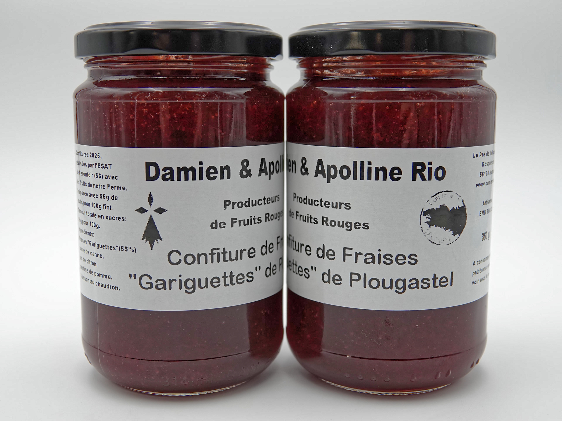 Gariguette : Confitures réalisées par l'ESAT de Carentoir (56) avec les fruits de notre Ferme.